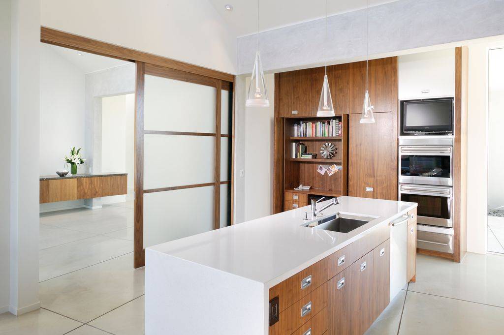 Чтобы совместить кухню и гостиную, необходимо устранить часть стены. В этом случае необходимо укрепить соответствующие несущие стены и перекрытия. Так как плита на кухне газовая, дверцы обязательны. Как вариант, можно установить раздвижные.