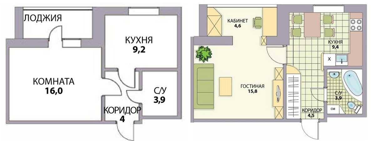 Схема перепланировки однокомнатной квартиры в двухкомнатную
