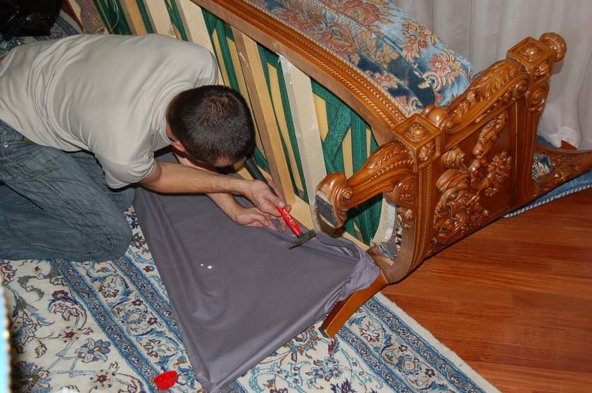 Проблемы могут возникнуть на первом этапе по разборке мебели. Порою без специальных навыков и инструментов сделать это проблематично. Поэтому решившись на эту работу необходимо проверить свои силы, перетянув хотя бы табуретку. На этой несложной задаче можно отточить технологию и подобрать инструмент.