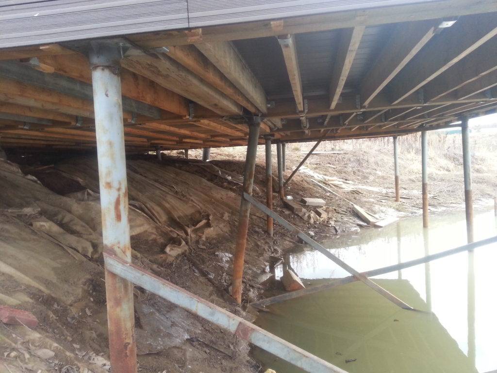 - Выполнить временные опоры. Точки их размещения рассчитывают таким образом, чтобы каждая из них принимала на себя равную нагрузку. Их устанавливают в вырытые углубления в грунте.