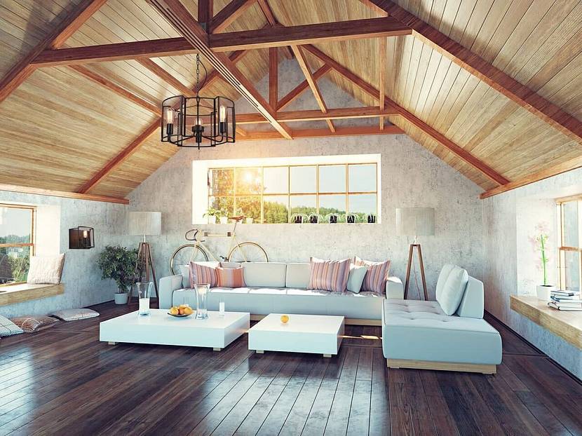 Полноценная жизнь под кровлей дома подразумевает наличие достаточного пространства. По общепринятым нормам для этого достаточно будет 2-метровой дистанции от пола до потолка. Конечно лучше, если это расстояние будет большим. Рассматривая дизайн чердака с треугольной крышей, целесообразным будет более низкие участки пространства планировать под места хранения вещей или другие хозяйственные нужды.