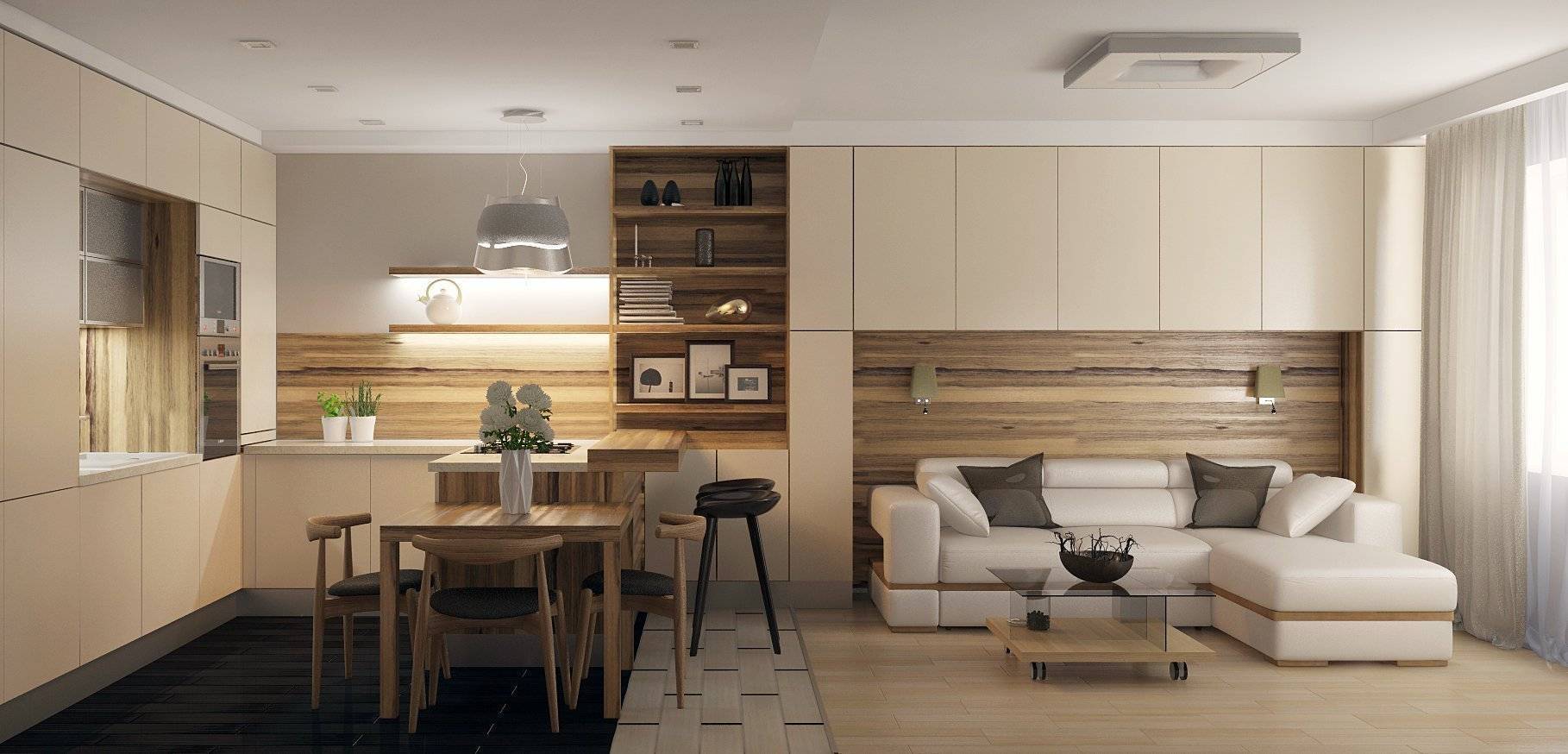 Проект с перепланировкой по сути мало чем отличается от обычного «наброска». Единственное, что необходимо учитывать, так это демонтаж стен или их отдельных частей. На плане эти места могут быть красиво помечены, как свободные, а на деле их отсутствие может привести к катастрофическим последствиям. Перед тем, как самостоятельно что-то сносить, необходимо подготовить проект будущих работ. Его сначала отдают архитекторам, которые вносятся коррективы и согласуют готовый план. Затем придется обойти еще ряд инстанций (пожарная, санитарная служба и управляющая компания). Также потребуется пакет документов, для предъявления в различные органы. Вся эта перепланировочная «круговерть» может затянуться надолго. Запаситесь терпением и временем. Обычно в совмещенных проектах фигурируют кухни-гостиные и столовые. В интерьере стоит учитывать не только особенности нового пространства, но и зонирование помещения, без которого картина не будет выглядеть завершенной.