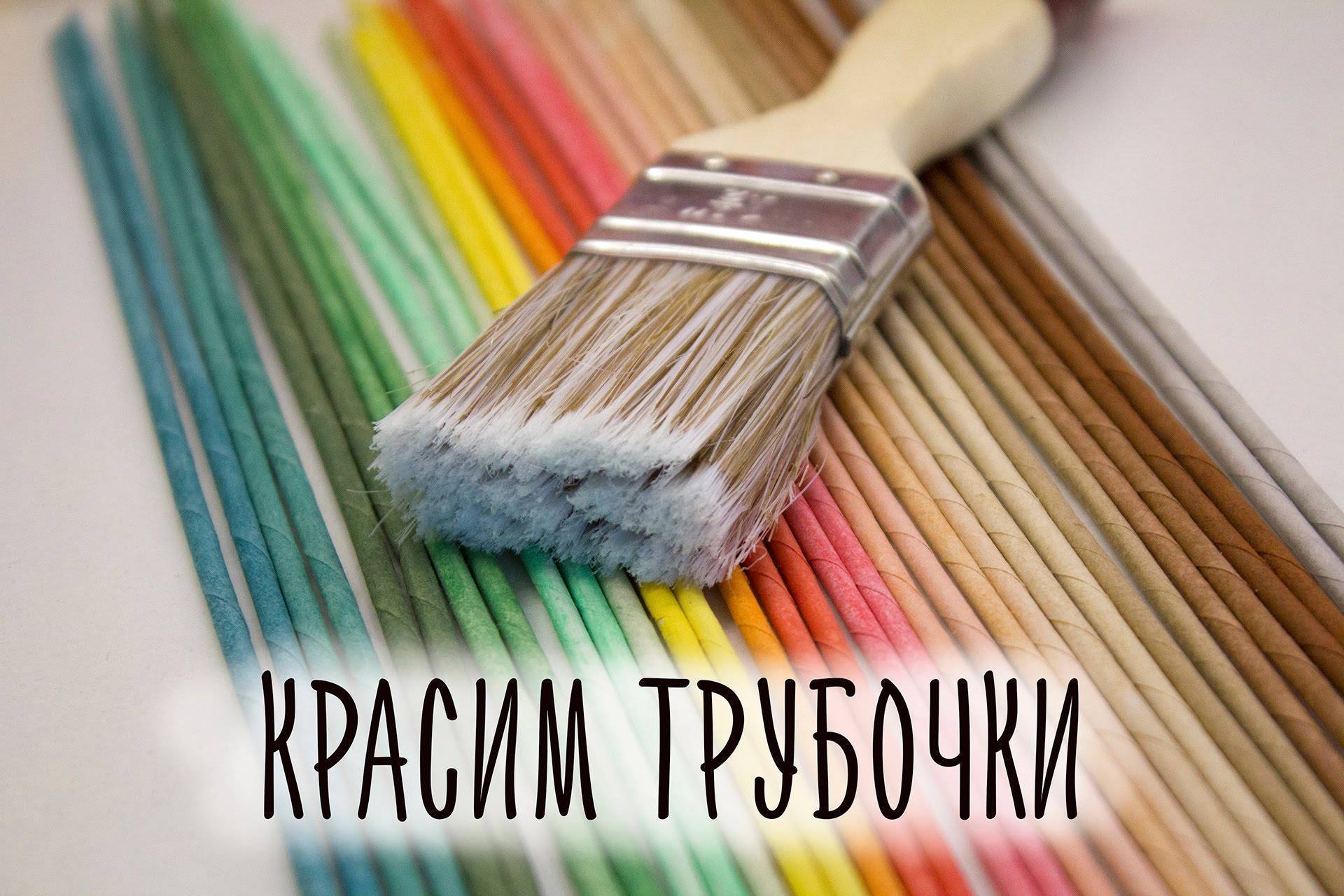 Окрашивать газетные трубы можно чем угодно – зеленкой, йодом, краской для волос, гуашью, пищевыми красителями, акрилом. Чтобы цвет получился ярким, равномерным, а газетный текст не был заметен, трубочки красят белой или серой краской, а позже – в любой подходящий колер.