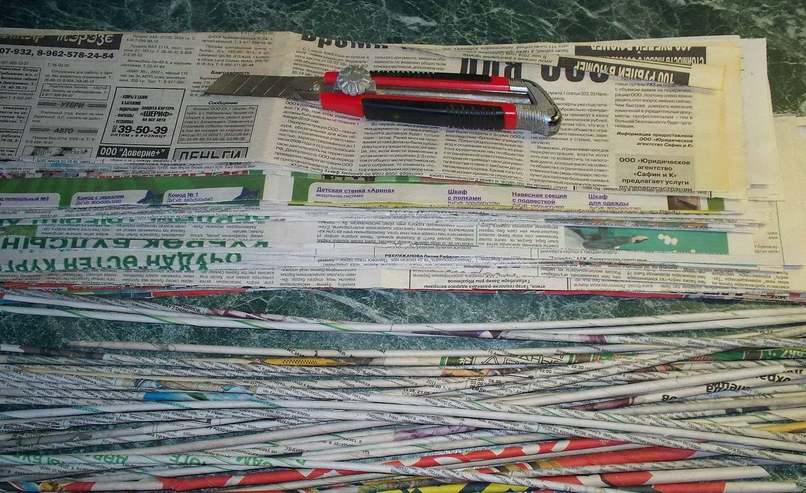 Перед началом плетения необходимо подготовить основу — трубочки. Более опытные в этом деле мастера используют более плотную бумагу от обложек журналов, но для детей лучше изготовить трубочки из обычных газет.