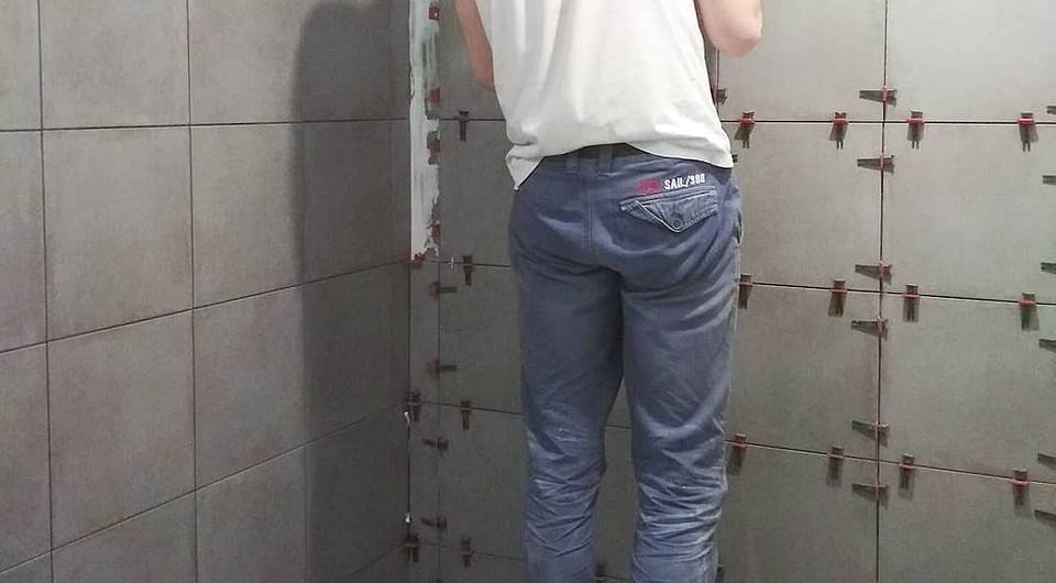 | 3 | ![]() | Укладка плитки как обычно начинается со второго ряда. Либо от уровня пола, либо от уровня в ванной. |