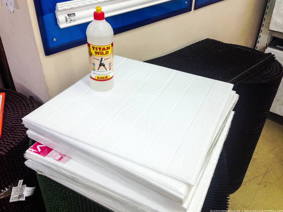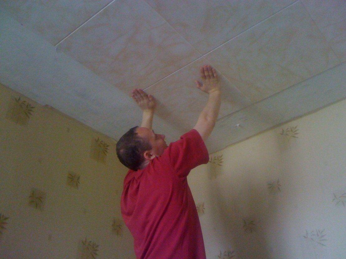 Начинаем клеить плитку на потолок своими руками
