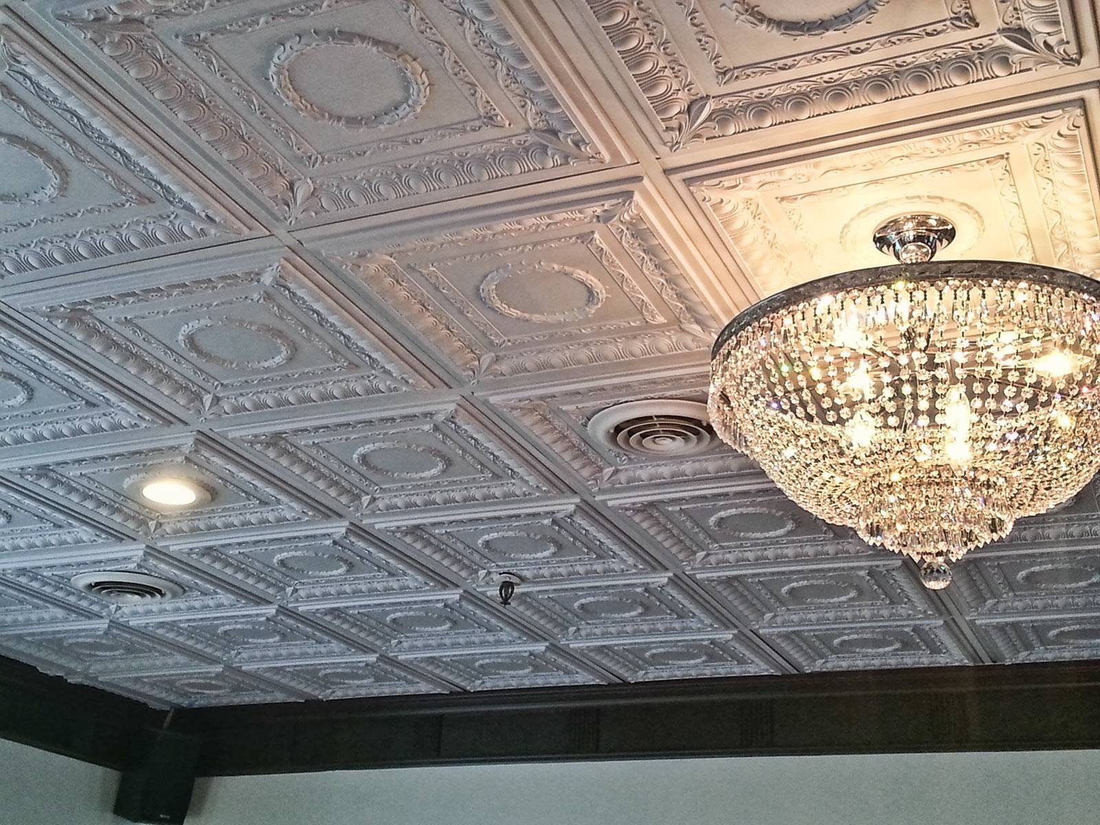 - Невысокую стоимость — потолки из бесшовной плитки наряду с традиционной облицовкой потолочной плиткой являются одним из наиболее бюджетных вариантов отделки потолка