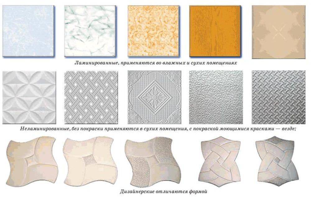 Виды пенопластовой плитки для потолка