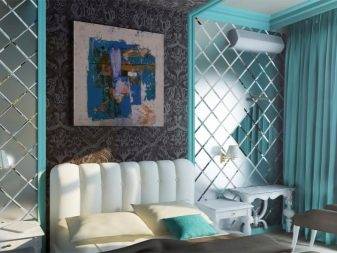 - акцентирование на деталях (функциональные участки выделяются определенным цветом или узором, при этом обще пространство однотонно);