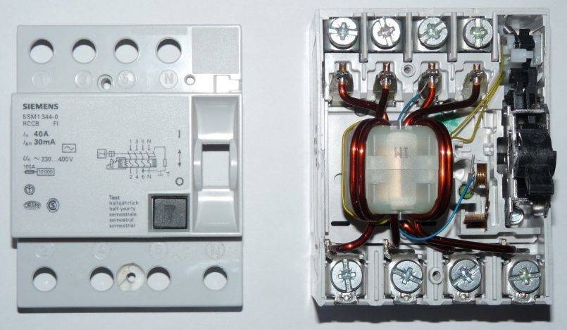 Итак, принцип работы устройства защитного отключения заключается в сравнении показателей тока условно на входе и на выходе замкнутой цепи. Как известно, если нет никаких побочных потерь, сила тока должна быть равной. Образно говоря – сколько вошло на нагрузку, столько должно и выйти с нее.
