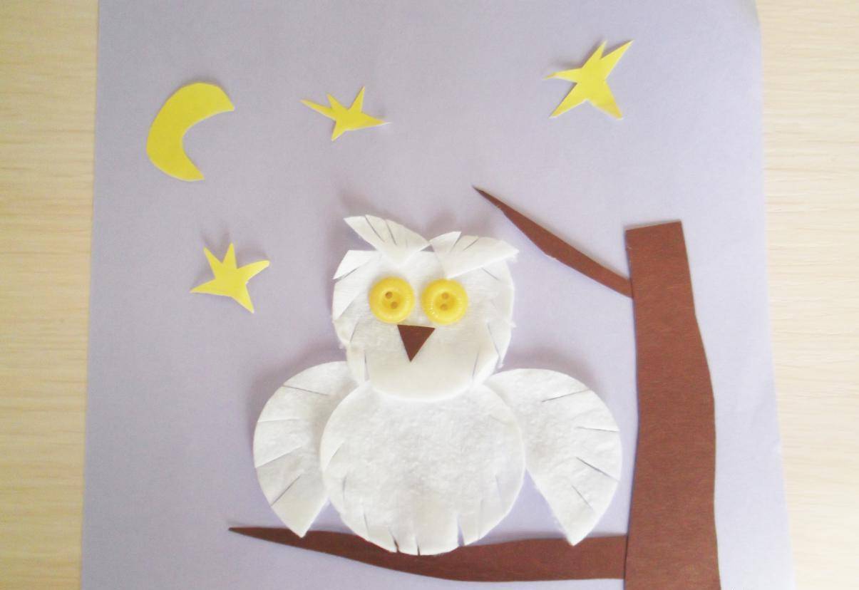 Сова из ватных дисков