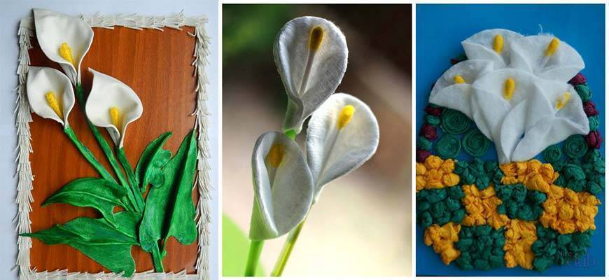 Калла – привлекательный белый цветок с жёлтой серединкой. Чтобы её сделать, потребуется: