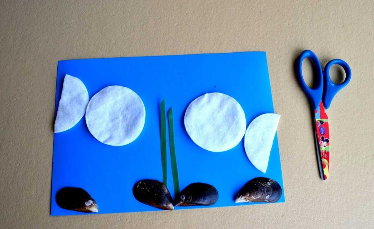 Теперь рассмотрим, как делаются поделки-аппликации из ватных дисков своими руками: