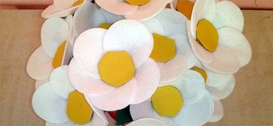 Сегодня мы попробуем сделать цветы из ватных дисков своими руками. Мастер-класс наглядно продемонстрирует вам творческий процесс поэтапно. Такой оригинальный букет из цветов может стать украшением вашего интерьера. Его также можно использовать и для оформления свадебных торжеств или подарить близкому человеку, ведь вещи, созданные в стиле hand-made, всегда ценятся.