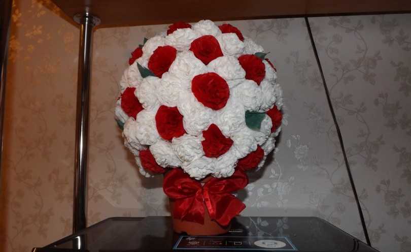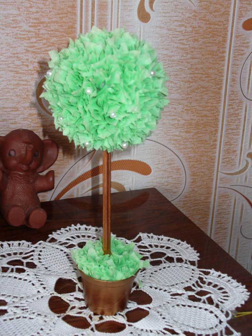 В последнее время очень популярно стало создавать топиарии из всевозможных материалов, будь то кофе, крупы, цветы, конфеты, ленты. Мы тоже не будем оригинальными и предлагаем вам сделать топиарий из бумажных салфеток.