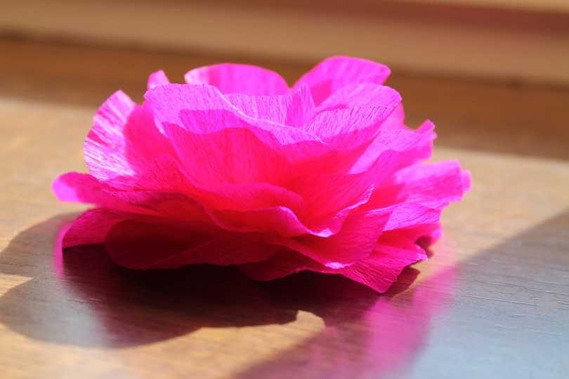 Готовое изделие должно быть похожим на гофрированный круглый цветок. Такое украшение можно подвесить на нитке или прикрепить к стене на двухсторонний скотч.