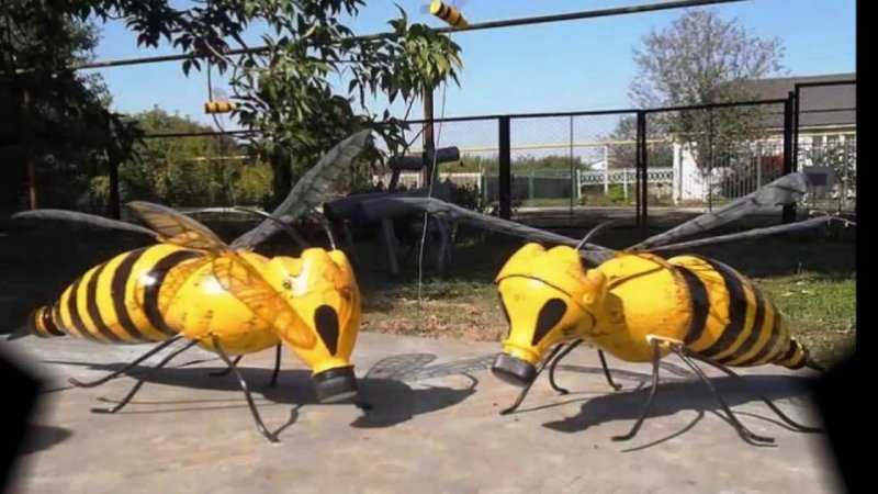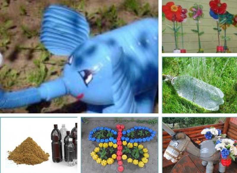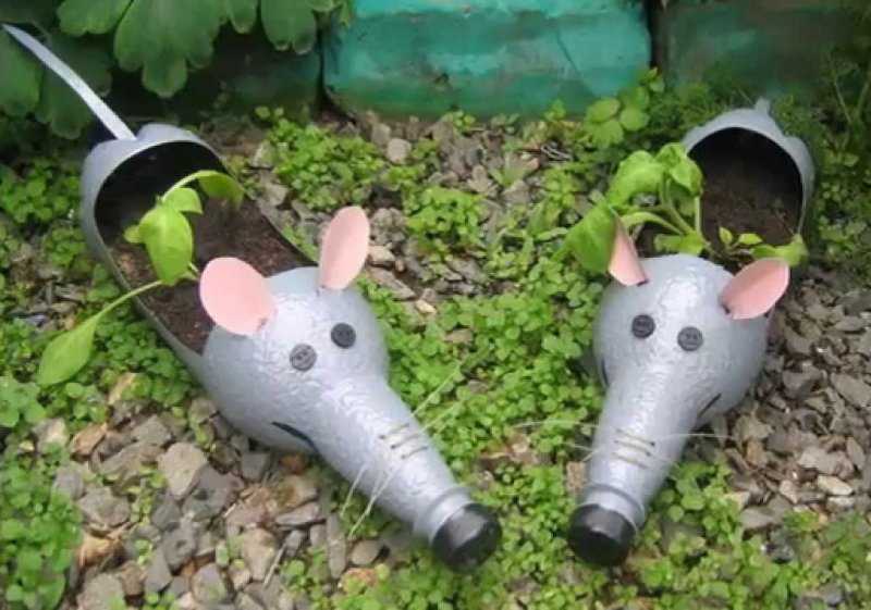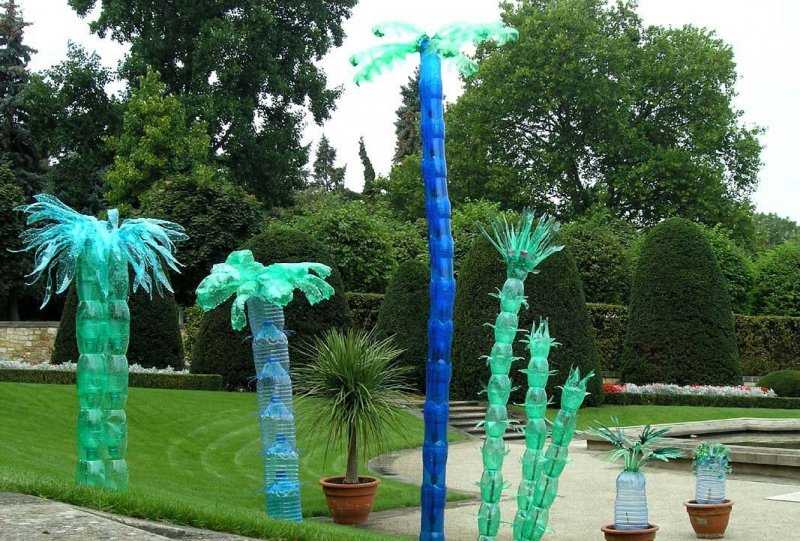 Разнообразных идей уйма и все они по-своему хороши. Тот, кто не хочет тратиться на дорогие скульптуры, предлагаем вам украшать свой любимый участок поделками из пластиковых бутылок. Как вы уже поняли из них можно мастерить все, что угодно вазы, животных, мобильные клумбы, игрушки для детей и много другое. Все просто не перечесть.