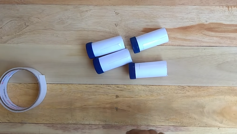 1. Помойте и высушите несколько пластиковых бутылок, накрытых крышками. Соберите все бутылки в круг и скрепите их вместе скотчем.