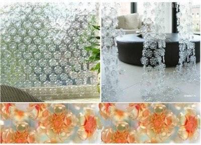 Обрезав прозрачным пластиковым бутылкам донышки и соединив их тонкой проволокой, вы получите воздушные ширмы для разделения пространства дачного дома