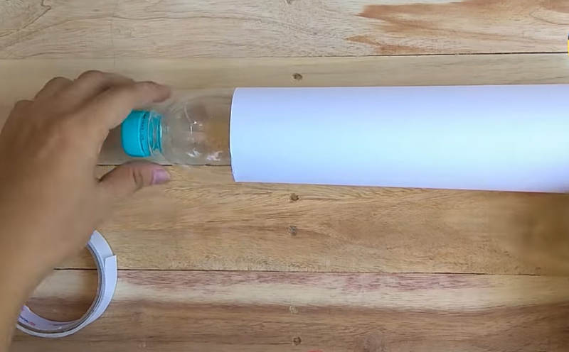 3. Приготовьте два прямоугольных куска поролона и один круглый кусок. Прямоугольными кусками нужно накрыть боковую часть собранных бутылок, а круглым куском верхнюю часть. Все закрепите с помощью скотча.