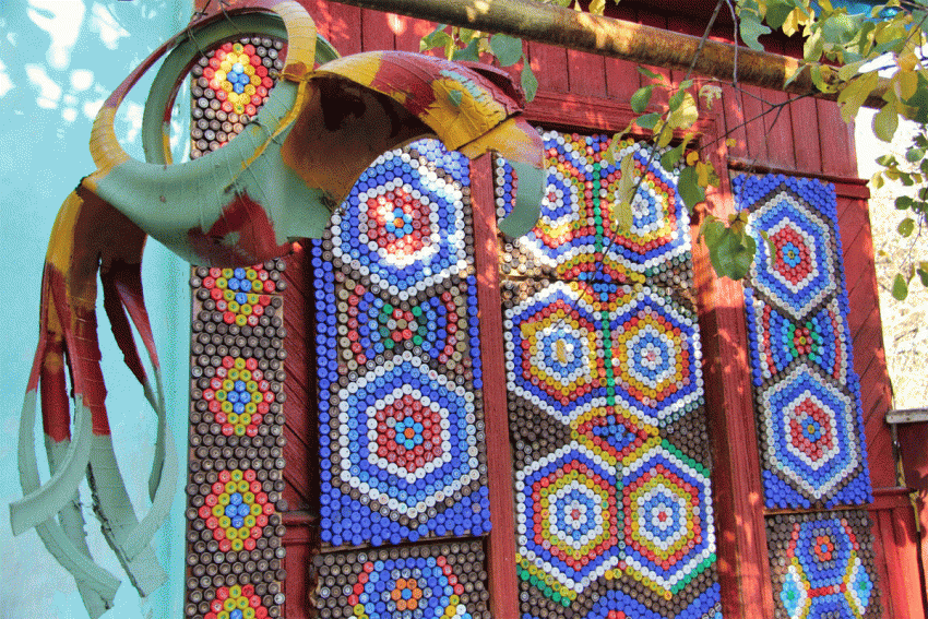 Раскрасить интерьер дачного дома во все оттенки радуги вам помогут пластиковые крышки от бутылок