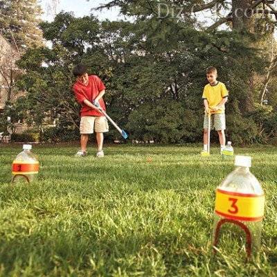 Обустройте у себя на даче поле для игры в крокет, а ворота сделайте из пластиковых бутылок