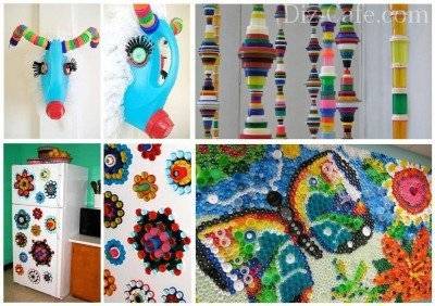 Неотъемлемая часть пластиковой бутылки – пластиковая крышка. Казалось, что за мелочь – но и её нашли применение народные умельцы. Из крышечек стали создавать красивейшие панно и целые картины. Сегодня подобное творчество вылилось в отдельное арт-направление.
