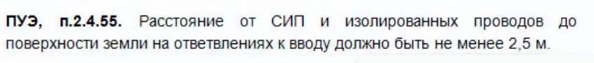 Нельзя, чтобы габарит от земли до провода СИП на фасаде дома был менее 2,5м.