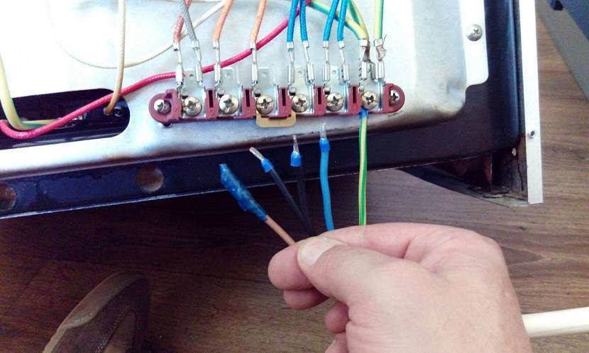 Здесь важно не перепутать контакты на кабеле, торчащем из стены, и кабелем, присоединённому к плите. В помощь цветовая расцветка