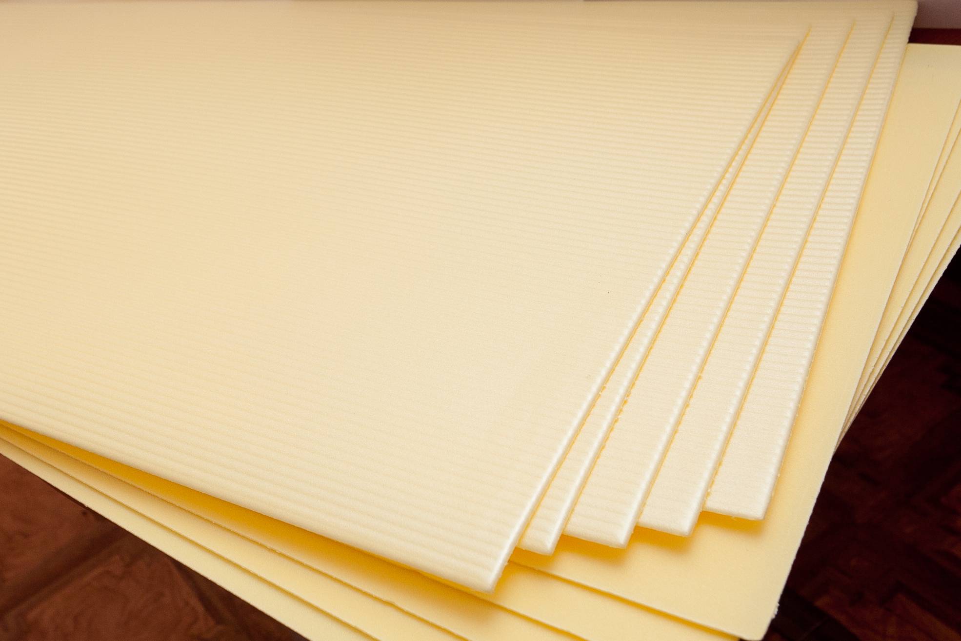 Жесткие синтетические листы отлично держат форму, но не способны компенсировать неровности. Стелить пенополистирол требуется на идеально ровное место. Эта подложка под ламинат славится высокими характеристиками термоизоляции, а также способна поглощать шум.