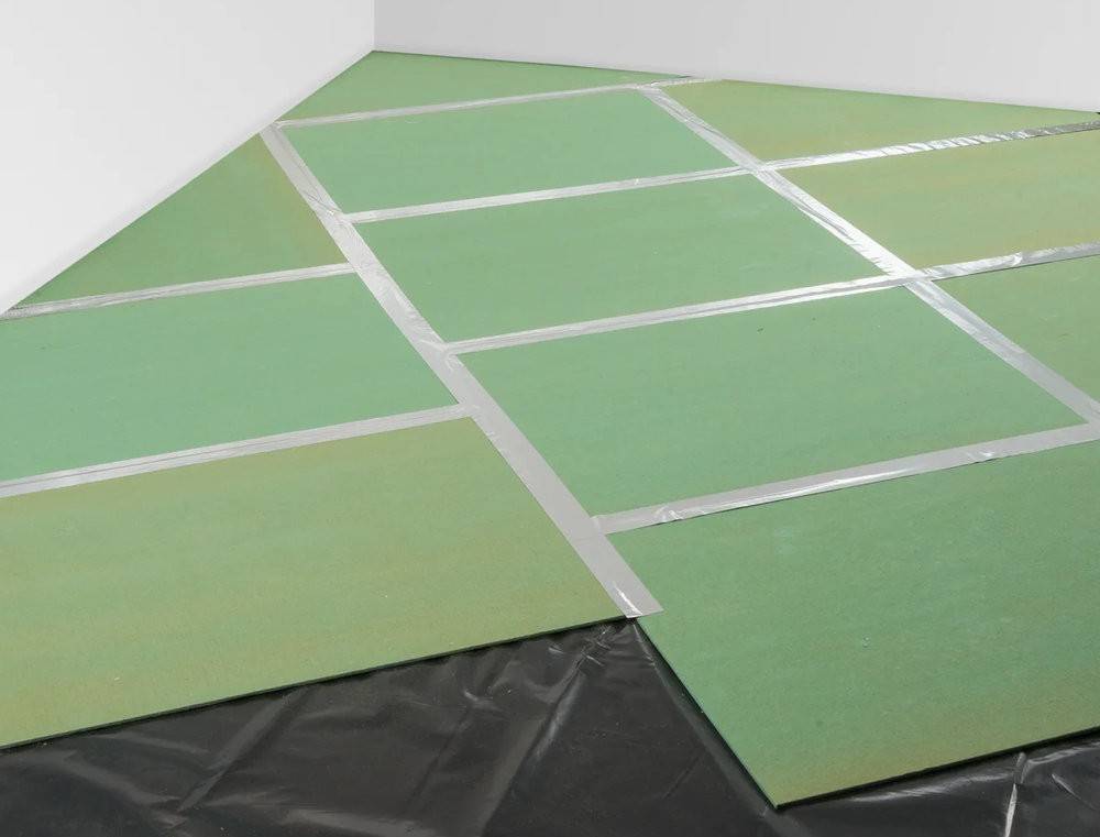 Материал начинают класть от дальнего угла комнаты, продолжая до покрытия всей поверхности. Соседние листы или торцы рулона монтируют встык друг другу (без нахлеста) и аккуратно скрепляют скотчем.