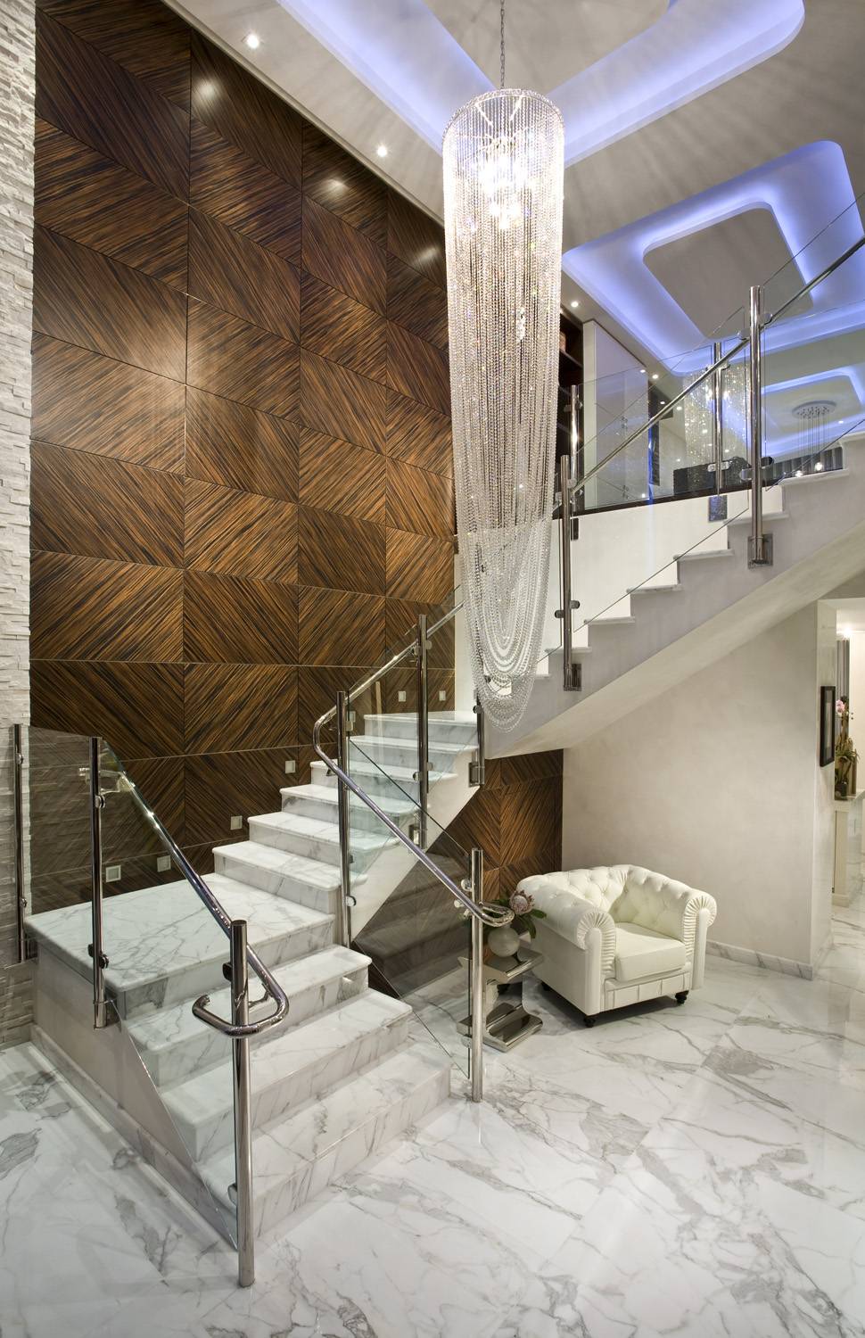 Внешне такая люстра отличается своей массивностью и длиной. Ее задача – осветить полностью весь лестничный проем целиком. Она подвешивается к потолку верхнего этажа и спускается на протяжении всех лестничных пролетов. Отлично подходит для освещения винтовой лестницы.