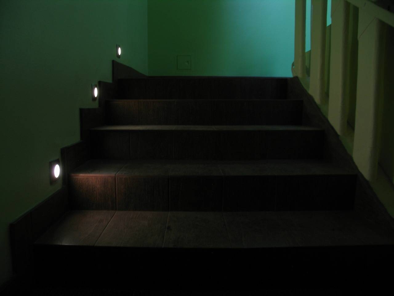 Кроме ламп накаливания, которые потребляют много энергии и производят большое количество тепла, для монтажа подсветки лестниц применяют: