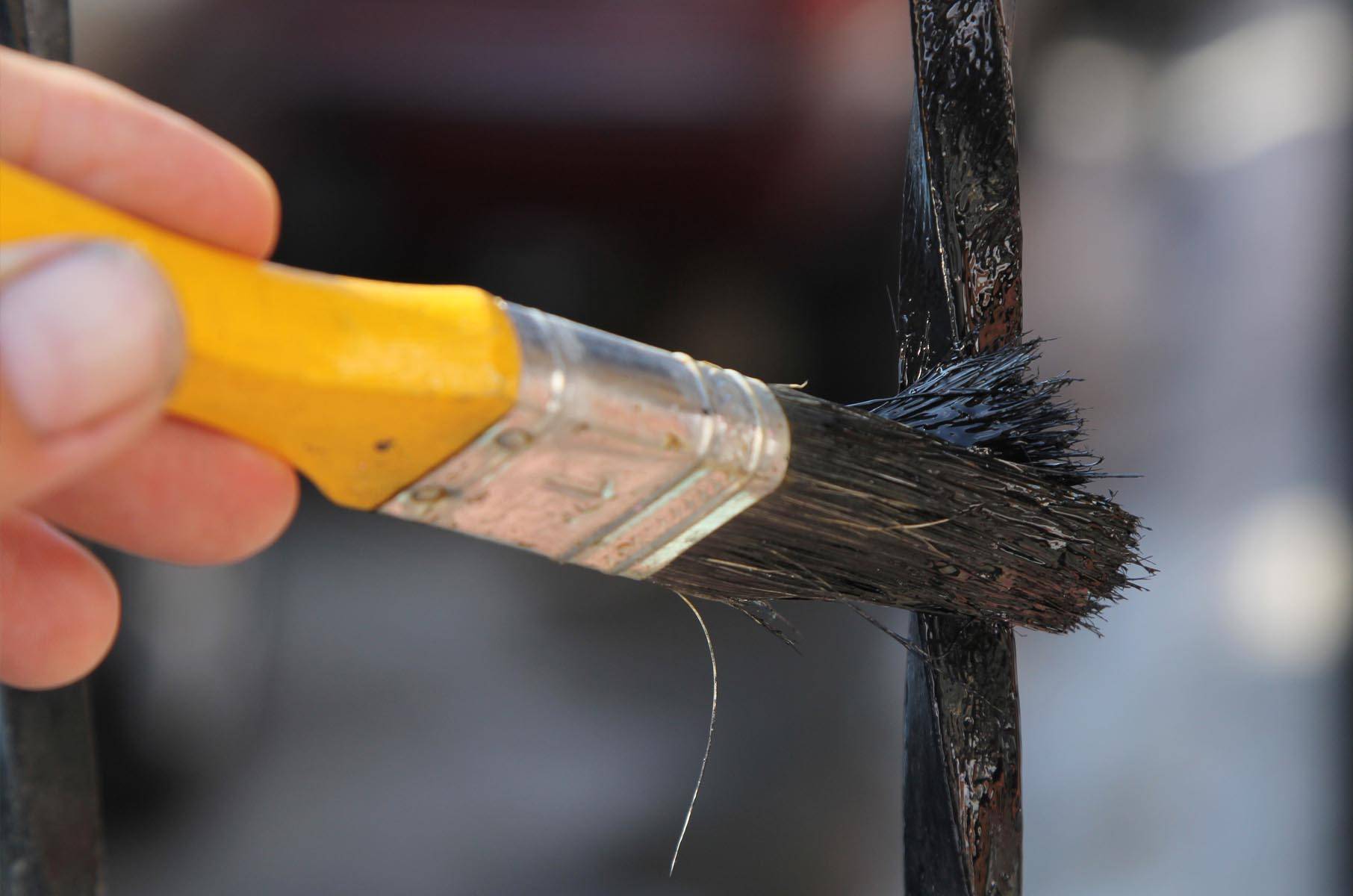 При нанесении краски по металлу для наружных работ на забор, крышу, другие внешние поверхности вначале кистью или маленьким баллончиком обрабатывают все места, недостижимые для валика. Затем проводится распределение акрила выбранным инструментом. Учитывают, что кисти для больших площадей не подходят, так как после них остаются видимые полосы и разводы.
