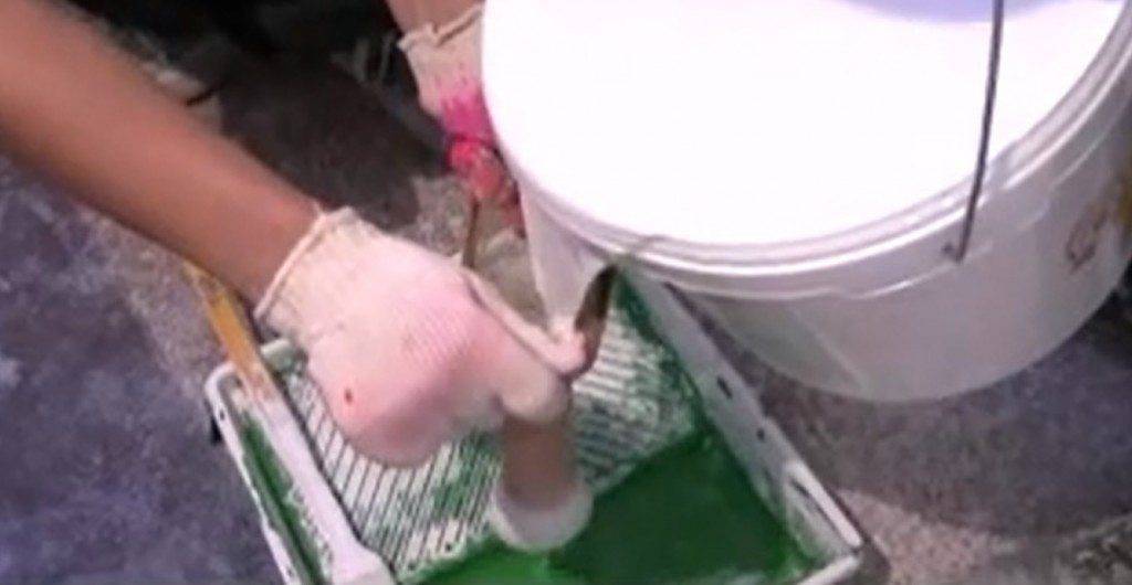 Краска наливается в специальную малярную ванночку, с помощью которой удобно обкатывать валик. Далее уже с ванночкой и порцией краски можно проще перемещаться по комнате. Валик первоначально окунается прямо в ведерко с краской так, чтобы он полностью покрылся ею. Это необходимо для того, чтобы краска равномерно легла по всей его поверхности. Достаточно сложно и долго раскатывать первоначально валик только в малярной ванночке. Уже после того как валик покрыт полностью краской, задача значительно облегчается. Далее можно приступить к покраске основной площади.
