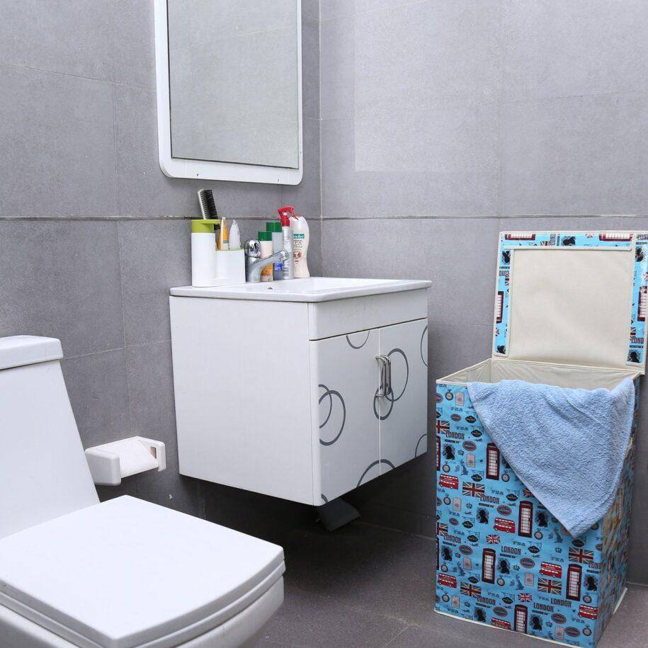 Стильные варианты не потребуют больших материальных затрат – вы можете сами связать кармашки для мелких аксессуаров в ванной, сплести корзину для белья или же декорировать фольгой старую коробку из плотного картона. Тем не менее, можно приобрести в магазинах и дизайнерские изделия – например, деревянные ящики, декорированные под старину, или стеклянные емкости, расписанные полупрозрачными красками.