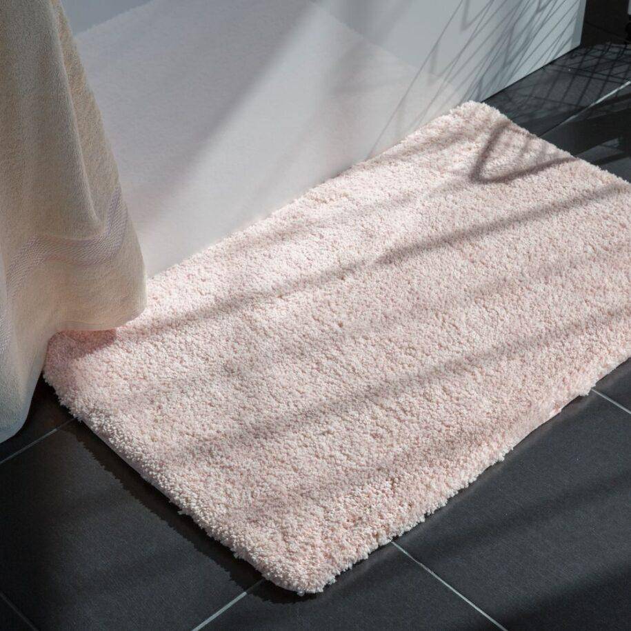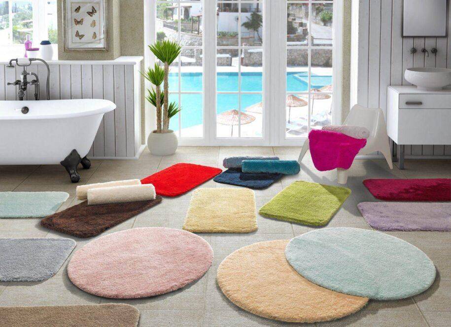 Кроме того, в ванной обычно нужен небольшой коврик – он должен быть мягким, но иметь короткий ворс и синтетические волокна в составе, чтобы его было удобно стирать и сушить.