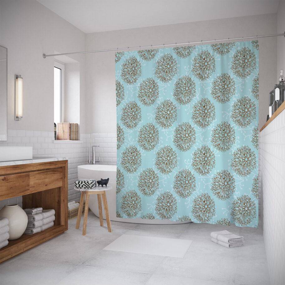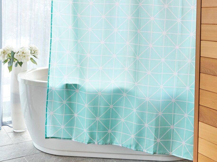 Если в душевой нет стеклянных створок, то пригодится шторка. Она не только украсит помещение, но и предотвратит попадание капель на окружающую мебель, технику и пол
