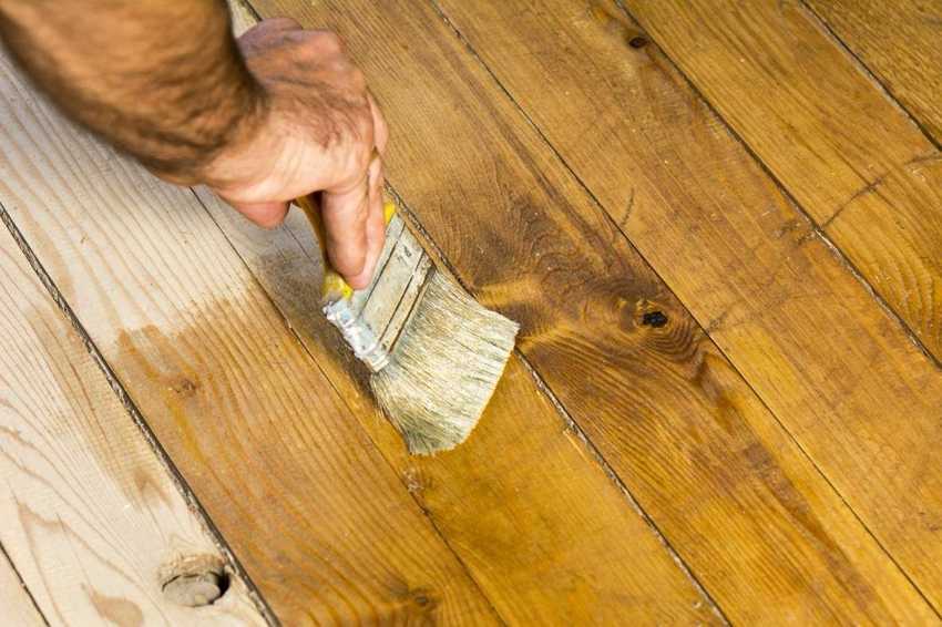 Краска для нанесения кисточкой или валиком чаще встречается в отделке помещений. Нередко ее используют в качестве защитного лакового слоя для деревянных полов – так и рисунок дерева будет виден и полы не сотрутся.