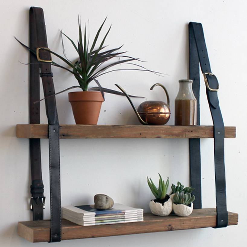 Способ второй. Рассмотрим, как сделать полку на стену своими руками с минимальными затратами, используя материалы, которые есть практически в любом доме, а именно – несколько ремней и дощечку. Для этого вам потребуются: