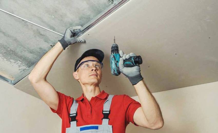 Монтаж потолочного гипсокартона осуществляется с помощью саморезов и шуруповерта