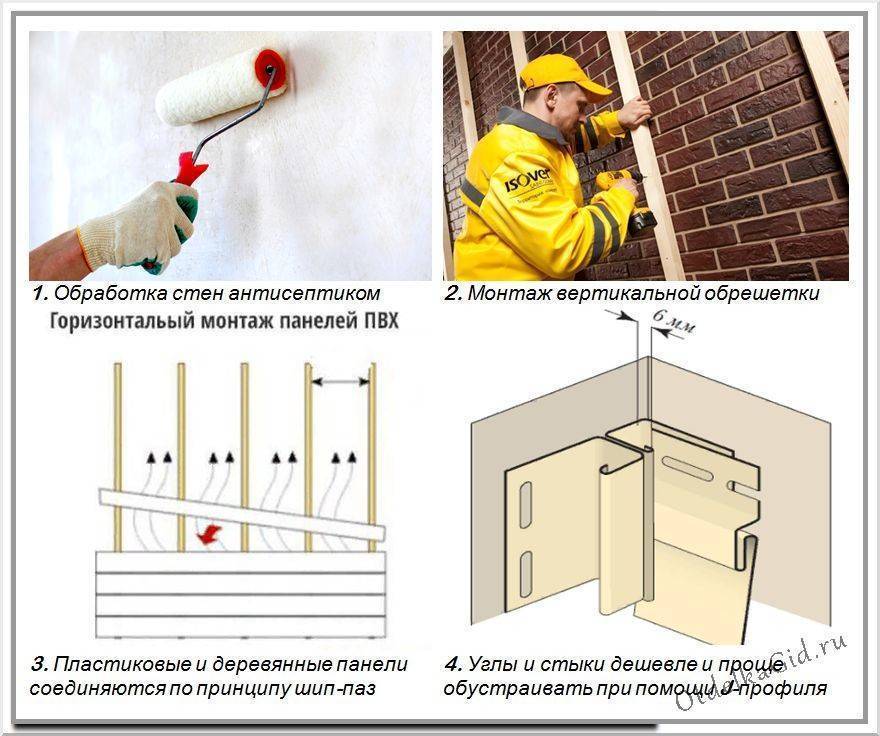 Если стены ванной комнаты неровны, то отделка сайдингом ванной осуществляется с использованием каркаса. Рабочий процесс в этом случае состоит из следующих этапов: