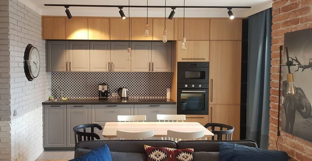 - Если вы молоды хотя бы и душой и часто принимаете гостей, возможно имеет смысл объединить кухню с гостиной, потому что современный дизайн кухни обычное про открытое пространство