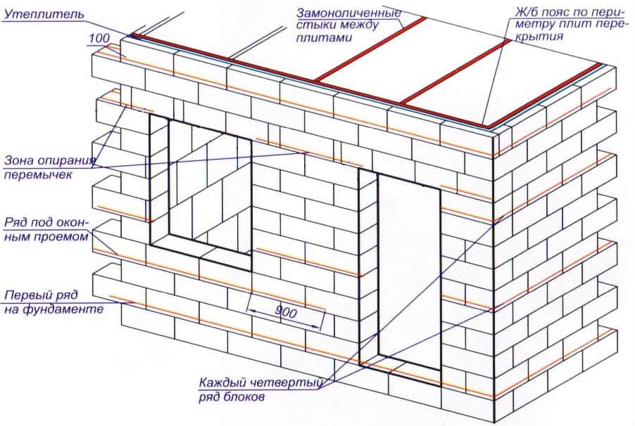 Пристройка из пеноблоков не возможна без обустройства армированного пояса.