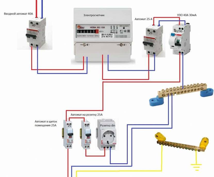 В Вашем варианте может быть все в корне по-другому, и это не будет свидетельствовать о том, что схема составлена неправильно. В каждом индивидуальном случае собрать распределительный щит можно по-своему.