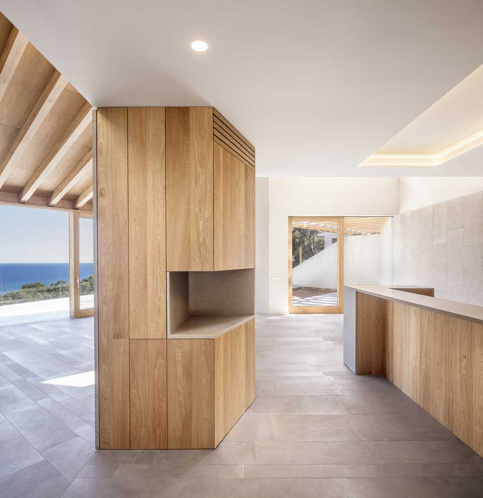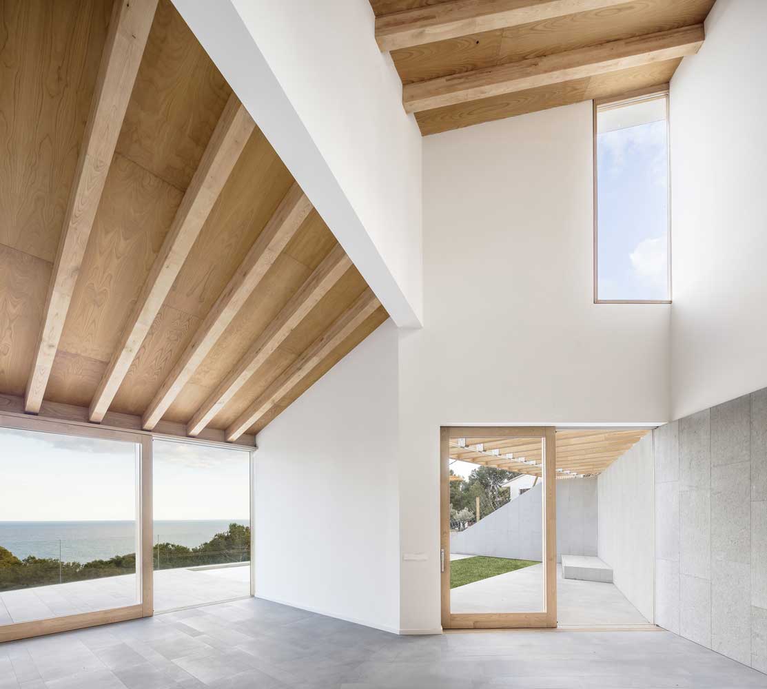 Дом расположен на склоне холма и имеет открытую планировку, свободную от колонн и отличающуюся разнообразием уровней, которые соответствуют топографии участка. Оба фасада сделаны из стекла, и это устанавливает прочную связь между внутренним и внешним пространством. Бетон является основным материалом, используемым для конструкции. Это в сочетании с деревом для деревенского и органического вида.
