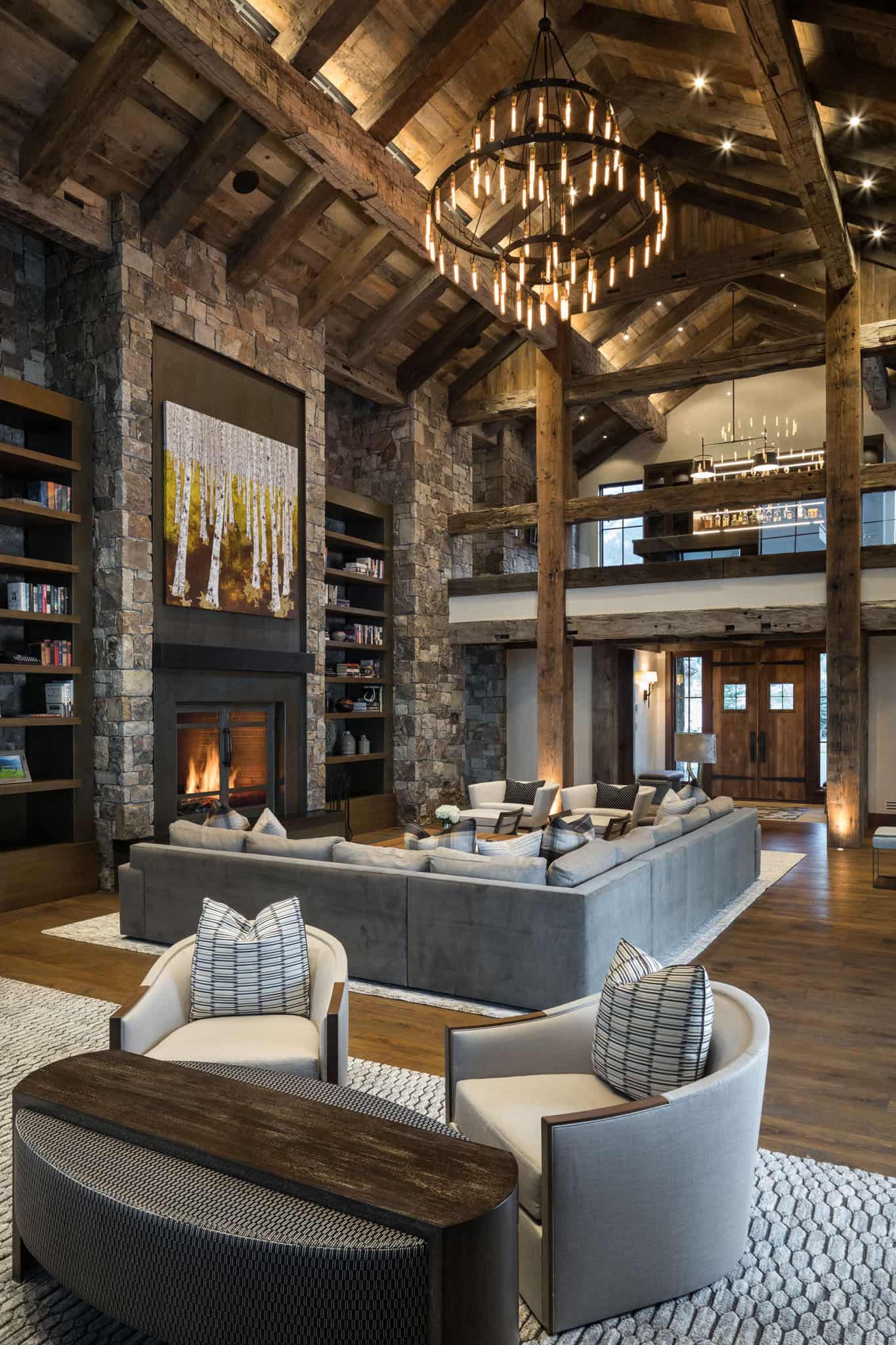 Еще одна характерная черта – массивные перекрытия и тяжелые внутренние балки из цельных бревен. Хотя обычные загородные коттеджи не подвергаются тем нагрузкам, что альпийские хижины, эта особенность придает им характерный шарм.