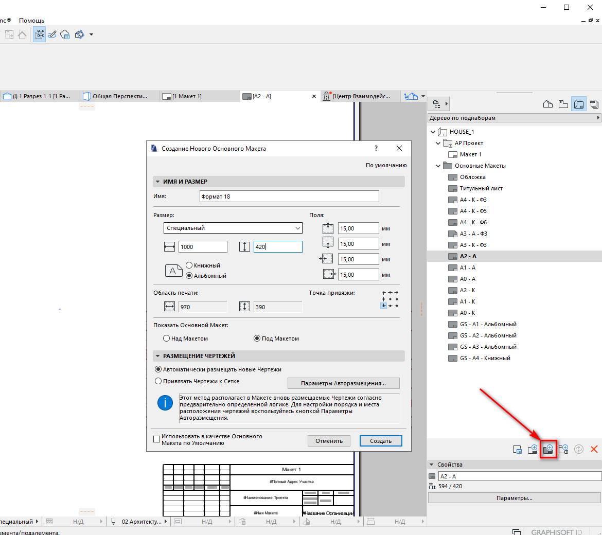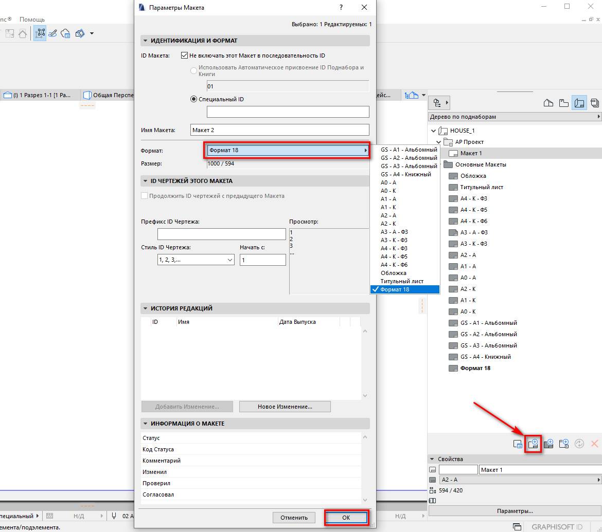 Кликните по второй иконке в нижней части книги макетов. В открывшемся окне в пункте «Формат» нужно выбрать основной макет.
