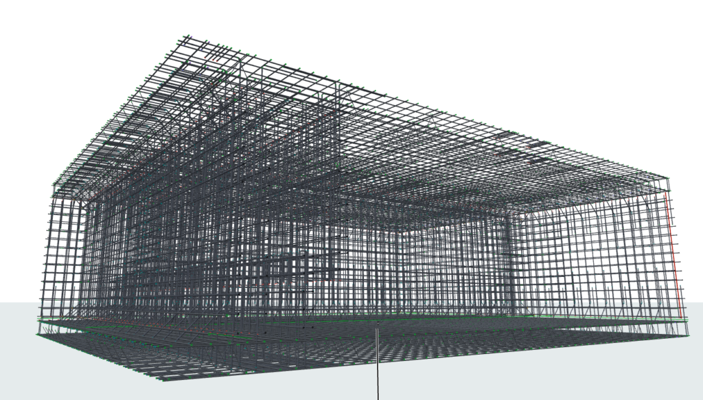 Рис. 18. Трехмерный разрез модели резервуара с армированием всех конструкций (бетон скрыт в слоях)