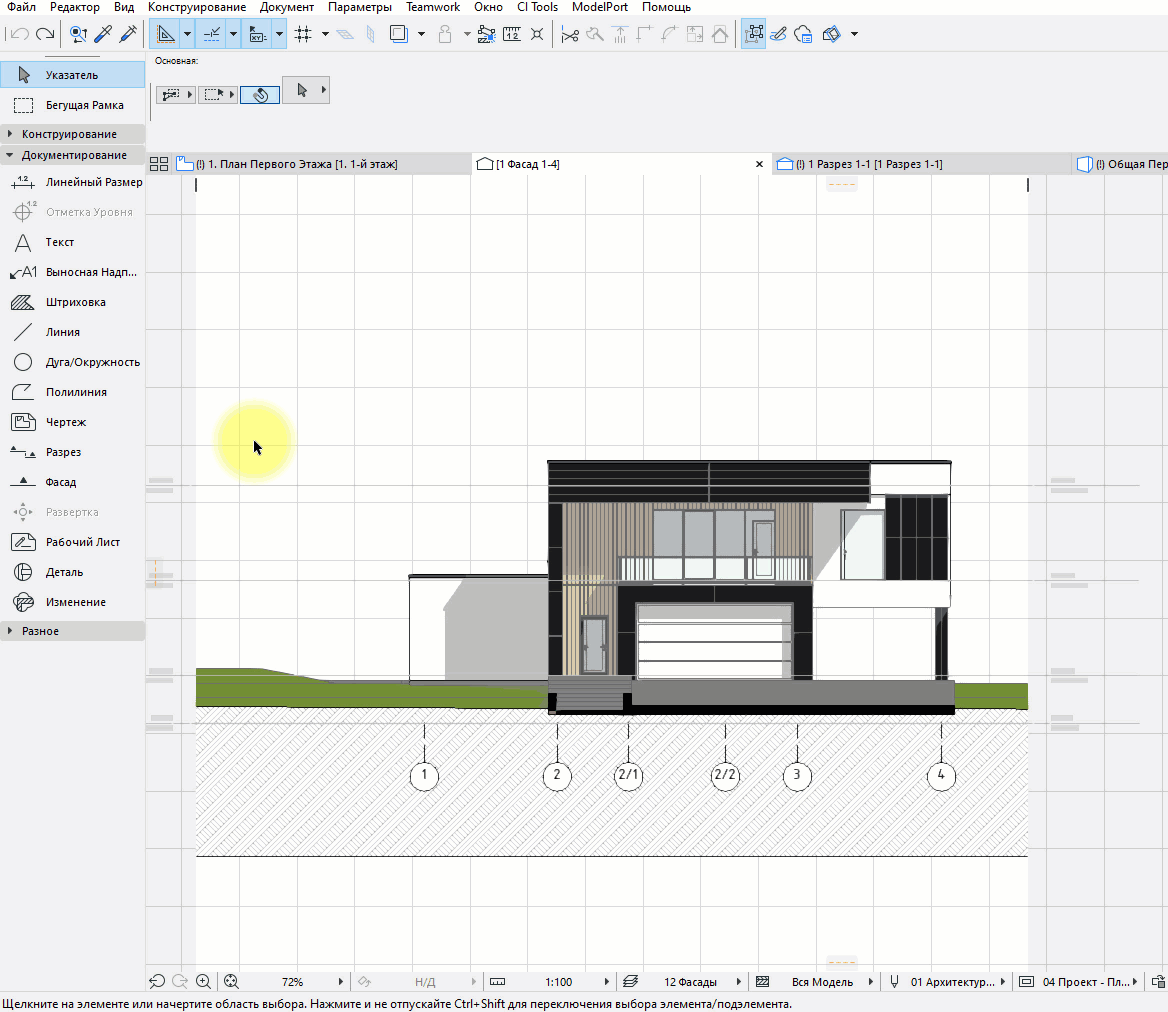 На основе сделанного Архикад может подготовить соответствующий комплект чертежей и сопроводительной документации. Однако на ней нельзя работать с нуля, для успешного выполнения проектов надо стать мастером своего дела.